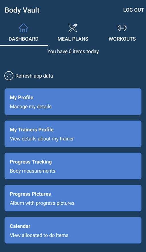 Your client can now log in to the Body Vault mobile app to download their plans and data that is unique to them. You and your client are now ready to start your fitness journey with Body Vault.